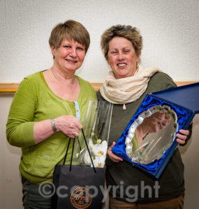 This led nicely into the presentation of awards to the winner of the various leagues and other events. The club runs two leagues – the main Club league and the Improvers’ league – and scores are the aggregate of a member’s top three scores in each of the two open competitions, the Rose Urie competition and the Annual Exhibition event. Winning the Robinson Trophy for the member who topped the main Club league, with an aggregate score of 234 out of a possible 240. Fiona Wallace managed to sneak into top spot in the Improvers’ League with a score of 199 to snaffle the Robinson Salver. Both were presented with their awards by Joyce Robinson who, along with husband Colin, had donated these splendid trophies.